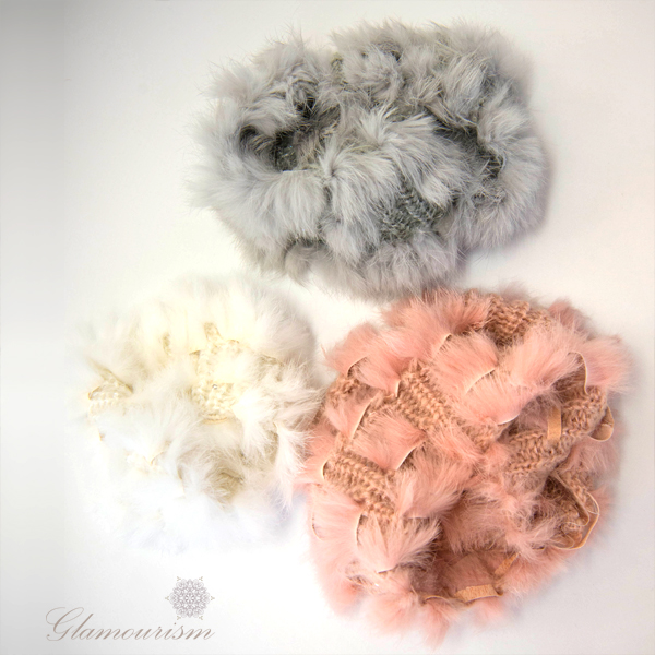 □ファーと控えめなラメスパンコール糸で大人ガーリーに仕上げたスヌード「Liz(リズ)」。